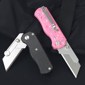 Donut G10 Alta Qualidade Pocket Knife Lâmina Deslizante Utilitária com Substituível SK5 Carbon Steel Blade para Camping