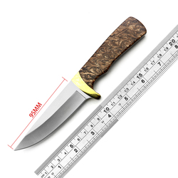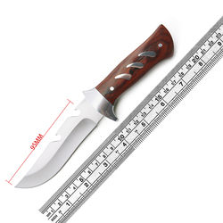 Lâmina fixa de aço inoxidável, faca reta de poupança de vida, punho de madeira, faca tática de acampamento ao ar livre, atacado