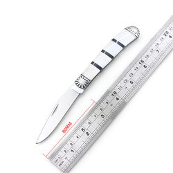Faca de bolso preto e branco, concha de costura, alça espelhada, lâmina de dobramento portátil