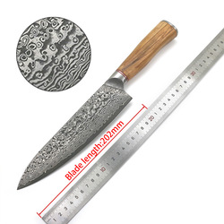 Venda direta da fábrica 67-Layer Damascus Stainless Steel Blade Kitchen Knife com Walnut Wood Handle Universal Slicing Knife Stock