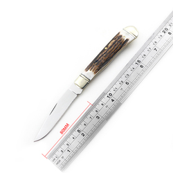 Facas de bolso com cabo de osso de vaca, faca dobrável portátil com lâmina espelhada